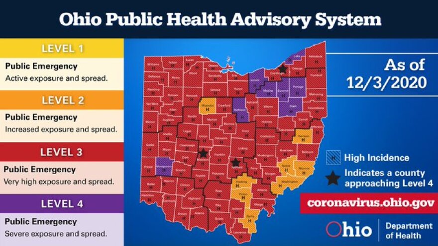 The updated Public Health Advisory Map for this week indicated five new counties were upgraded to Level 4: Medina, Portage, Richland, Stark and Summit Counties.